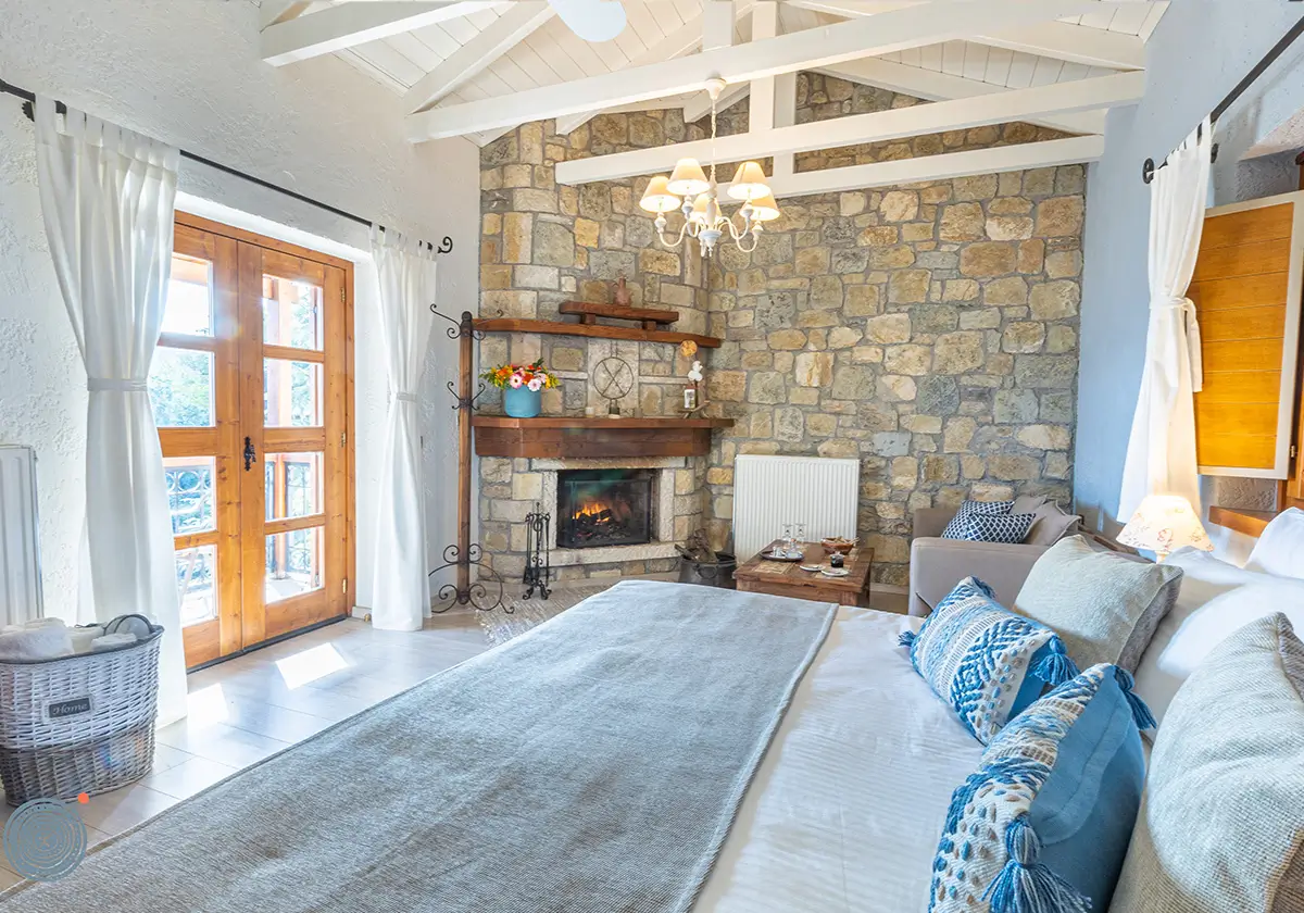 Διατηρώντας την ιστορική γοητεία του Abeliona Retreat, όλες οι Junior Suites μας διαθέτουν τζάκια, μετατρέποντας την παράδοση σε λειτουργικούς, φιλόξενους χώρους. Αυτά τα στοιχεία, σε συνδυασμό με τους πέτρινους τοίχους, δημιουργούν μια ζεστή και φιλόξενη ατμόσφαιρα, καθιστώντας το ξενοδοχείο μας έναν άνετο καταφύγιο καθ’ όλο το έτος.
