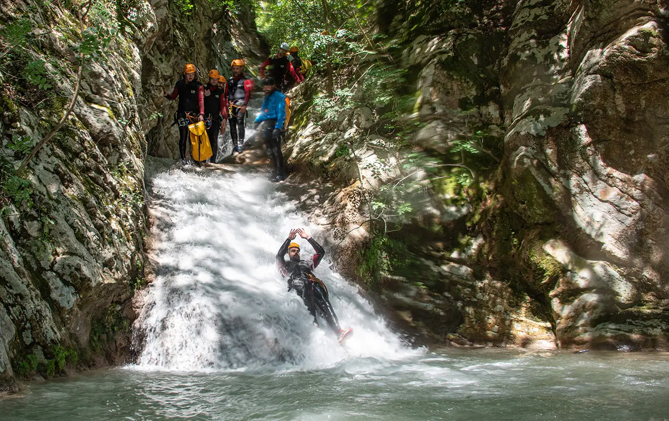 Κατά μήκος της διαδρομής του φαραγγιού δημιουργούνται καταρράκτες με απίστευτα νερά, ίσως τα πιο καθαρά στην Ελλάδα. Το καταπράσινο περιβάλλον, τα κρυστάλλινα νερά και τα μαγευτικά βράχια κάνουν τη διάσχιση αυτού του φαραγγιού μια αξέχαστη εμπειρία. Το ταξίδι μας, εδώ είναι ο ιδανικός τρόπος για να κάνετε τα πρώτα σας βήματα και να εθιστείτε στον μαγικό κόσμο του canyoning. Δεν απαιτείται προηγούμενη εμπειρία, οι οικογένειες με έφηβα παιδιά είναι ευπρόσδεκτες.