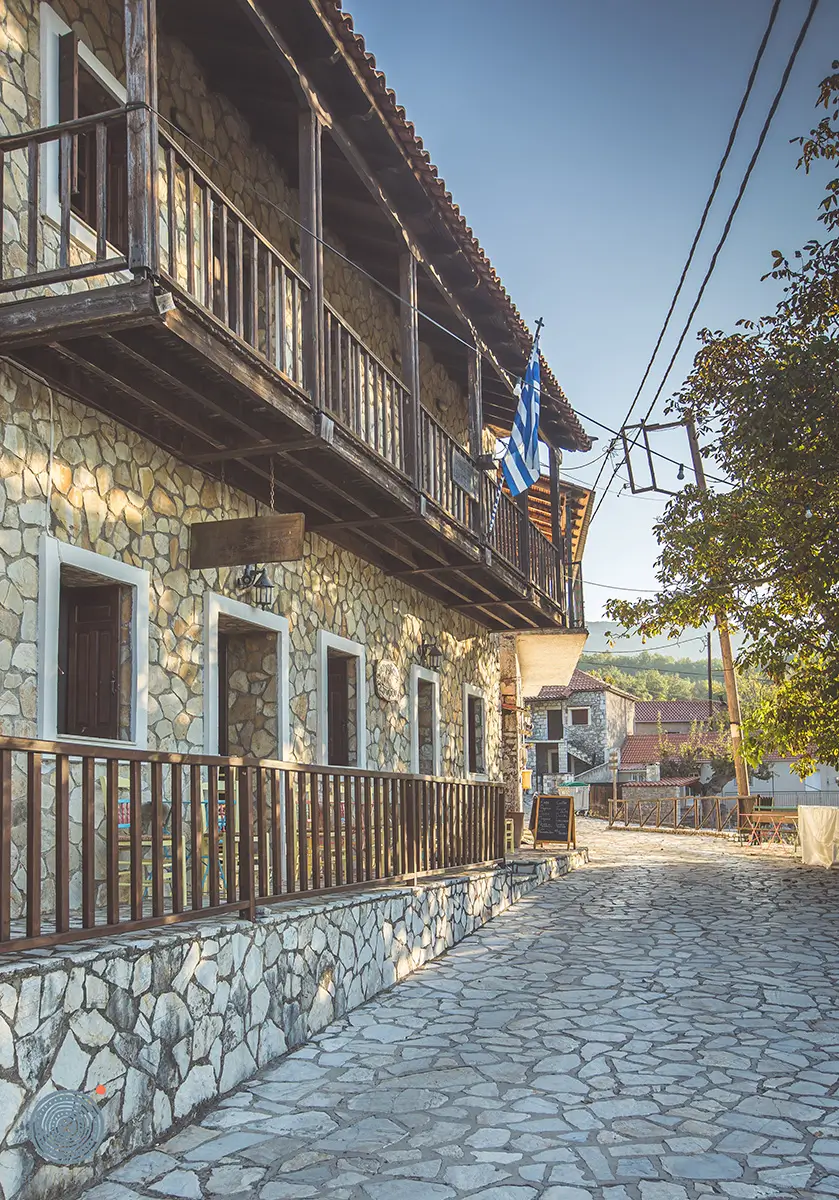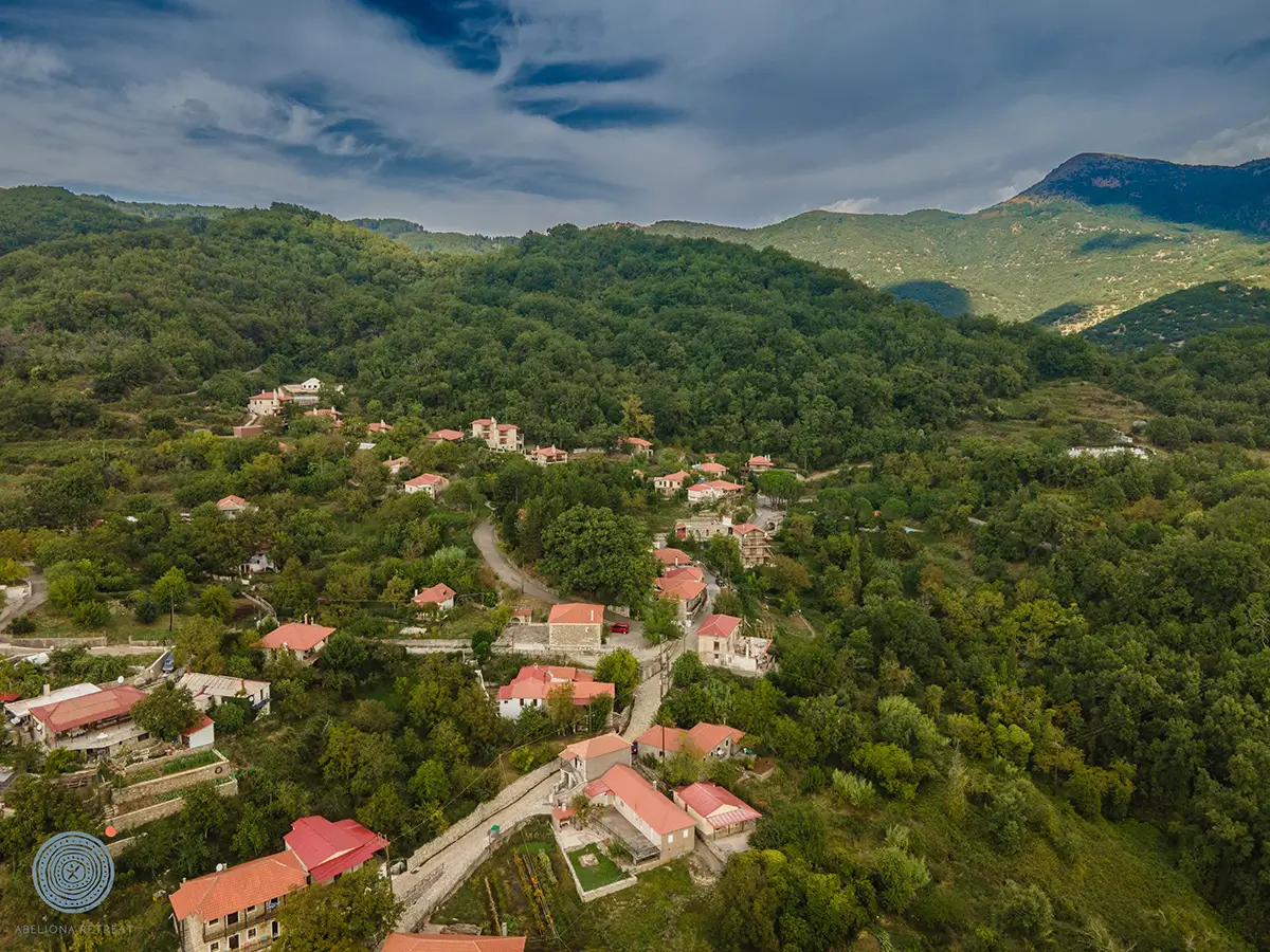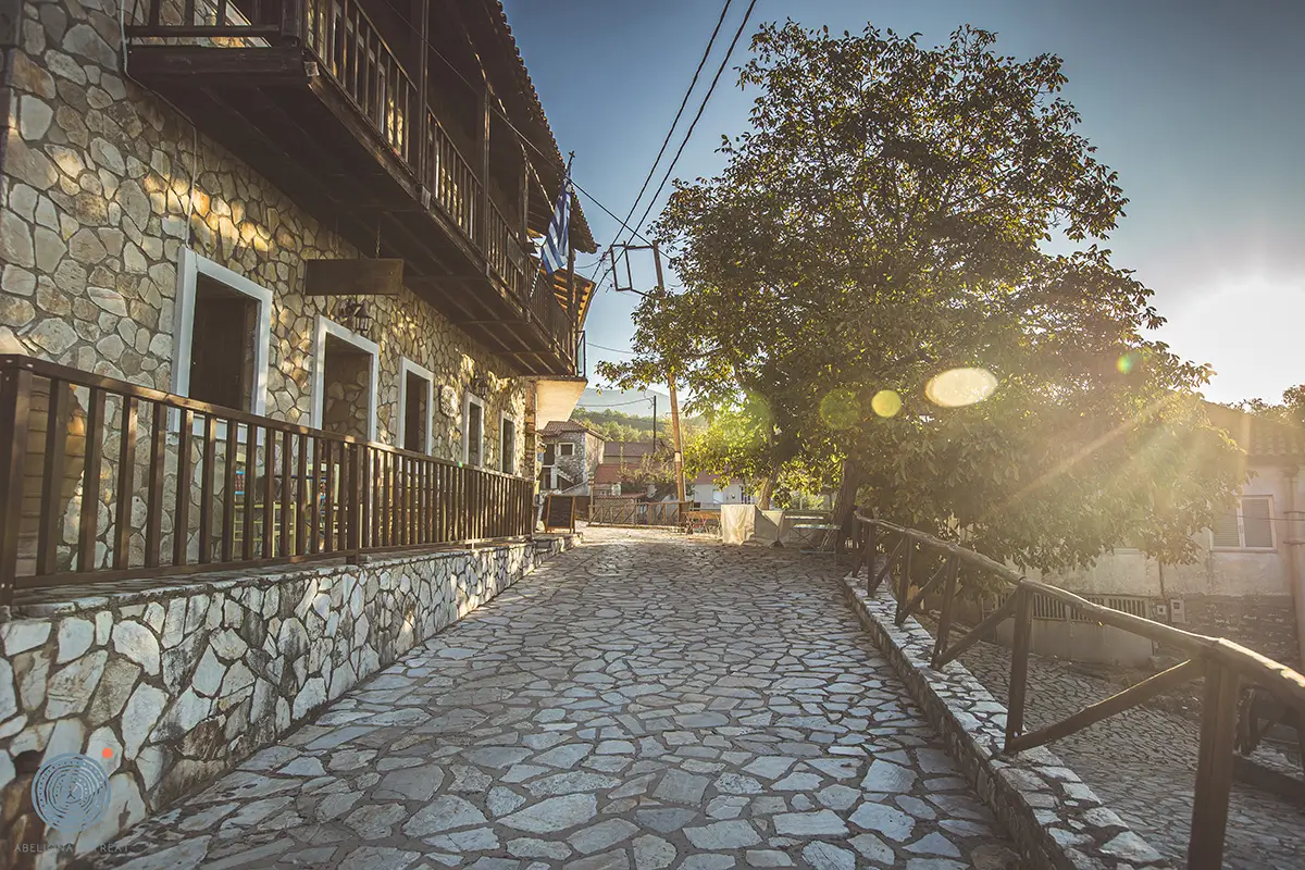 Μέσα στην αγκαλιά της φύσης, το χωριό Αμπελιώνα ακτινοβολεί μια αιώνια γοητεία. Στενά, πλακόστρωτα δρομάκια διαπραγματεύονται αυτόν τον γραφικό, πετρόχτιστο παράδεισο, δημιουργώντας έναν αφηγηματικό χώρο αυθεντικότητας και παράδοσης.